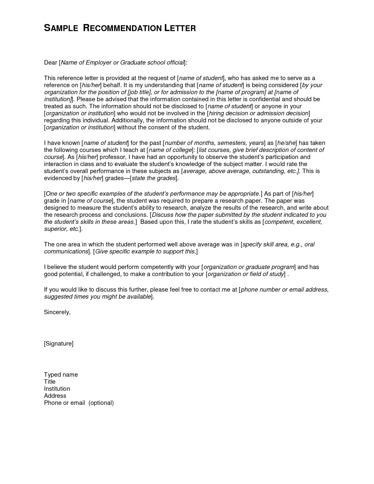 High school recommendation letter sample. While a student at salitus, emily maintained a 3.98 gpa while taking a full load of honors classes and seminars. I have worked with emily in my capacity as education department chair at salitus college. Student recommendation letter recipient’s name address city, state zip code your phone number your email date receiver’s name title high school name address city, state zip code dear sir?